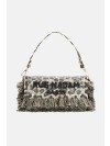 Shoulder bag in canvas dal carattere deciso e ricercato, impreziosita da frange e applicazioni di strass, che aggiungono personalità al design. Il logo e i manici in pelle vegan donano un tocco elegante e contemporaneo. Dotata di manico e tracolla entrambi rimovibili con dettagli in frange, assicura uno stile versatile e distintivo. L’interno è rifinito con fodera in cotone e tasca, ideale per una pratica organizzazione degli oggetti essenziali. Dimensioni L 25 x H 15 x P 7 cm