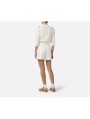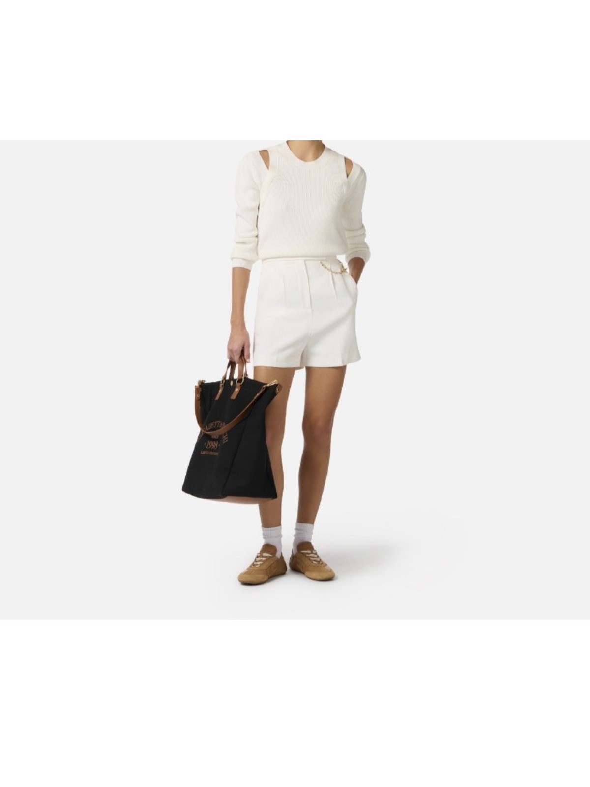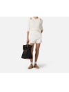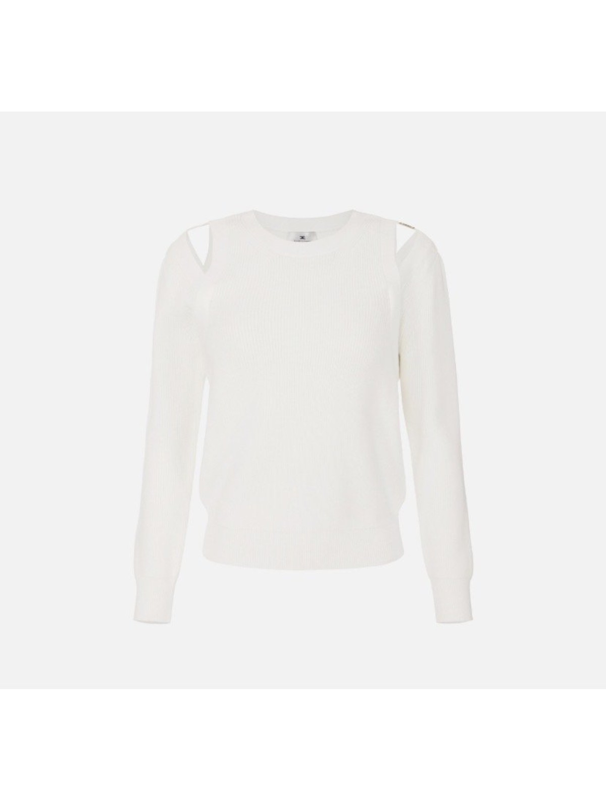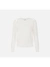 Felpa in maglia con maniche lunghe e cut-out sulle spalle a ricreare l'effetto di una canotta sovrapposta. La trama è avvolgente ma leggera grazie alla meticolosa lavorazione a punto pannocchia. La placca con logo illumina il capo. Vestibilità regular.