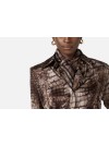 Foulard quadrato realizzato in twill di seta. Caratterizzato dalla stampa all-over a tema alligatore, ispirata a forme e geometrie naturali.