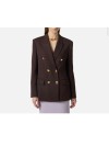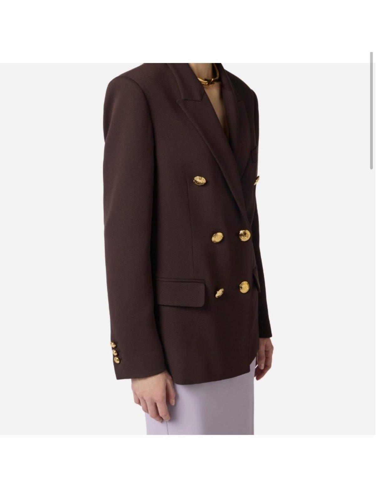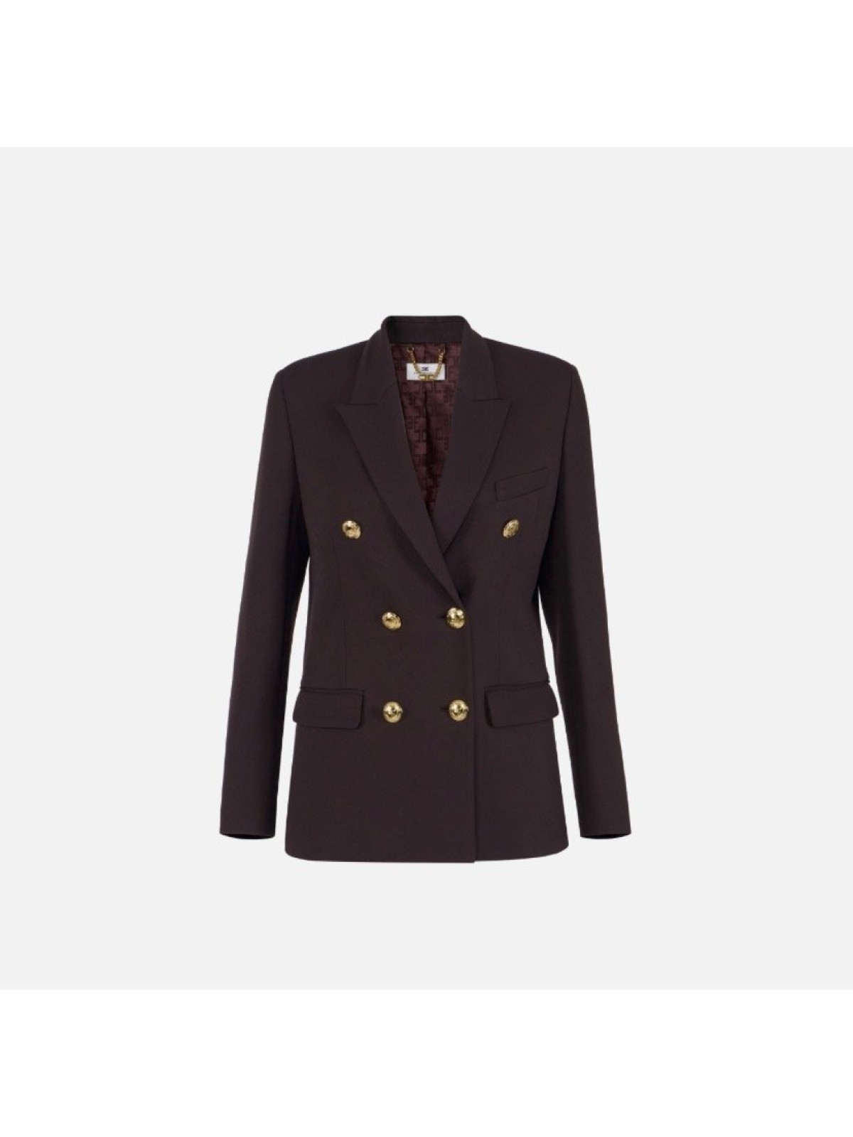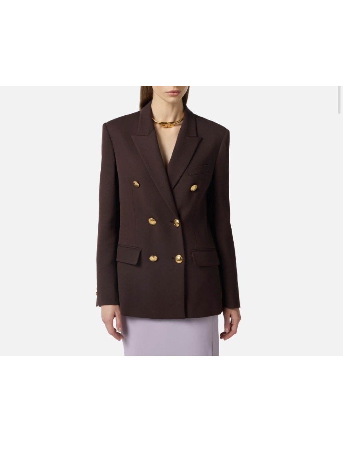 Giacca doppiopetto in gabardina. Il blazer ha spalle strutturate, rever a lancia, patte applicate. I bottoni in metallo dorato regalano eleganti note luminose. Vestibilità over.