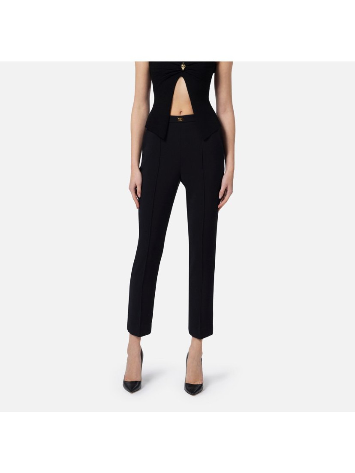 Pantaloni in crêpe stretch leggero con tasche nei fianchi e nervature. A impreziosire, la placca con logo in metallo dorato sul fascione. Vestibilità aderente e lunghezza alla caviglia. Parte della collezione Essential, per costruire il guardaroba perfetto.